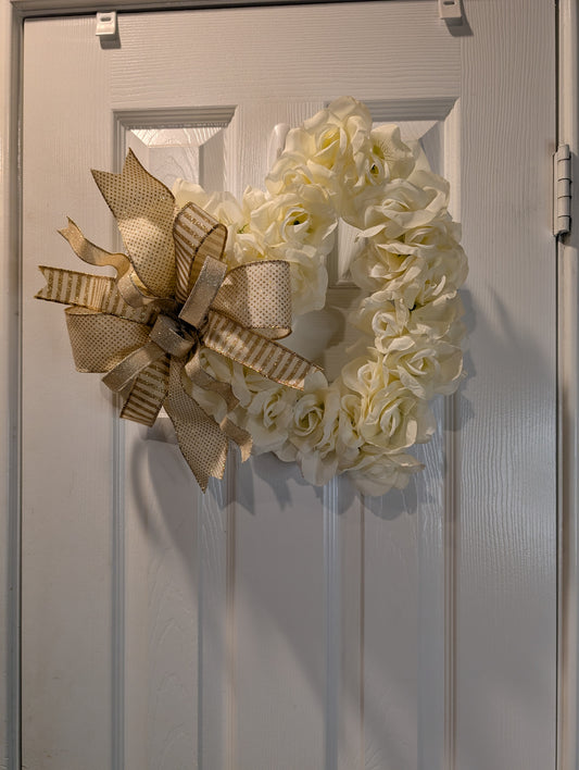 Cream and gold Valentine's Day heart, roses door hanger or wall decor